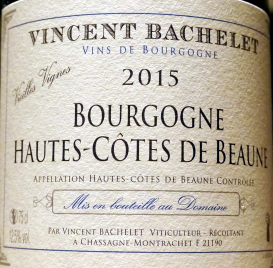 オーコートデ・ボーヌ ブルゴーニュ バンサン・バシュレ 2015年 ¥9900
